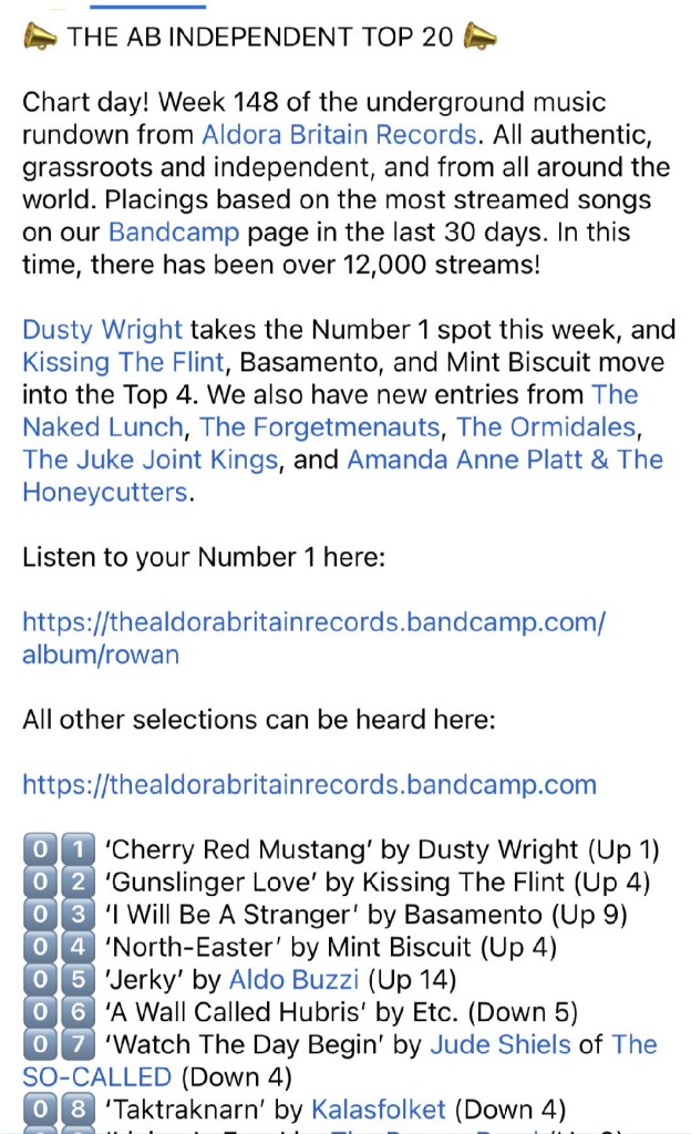 In just 1 week of Aldora’s exclusive release of my song “Jerky”- On Aldora’s Britain Records top 20 streamed songs – “Jerky” moved up 14 spots to #5